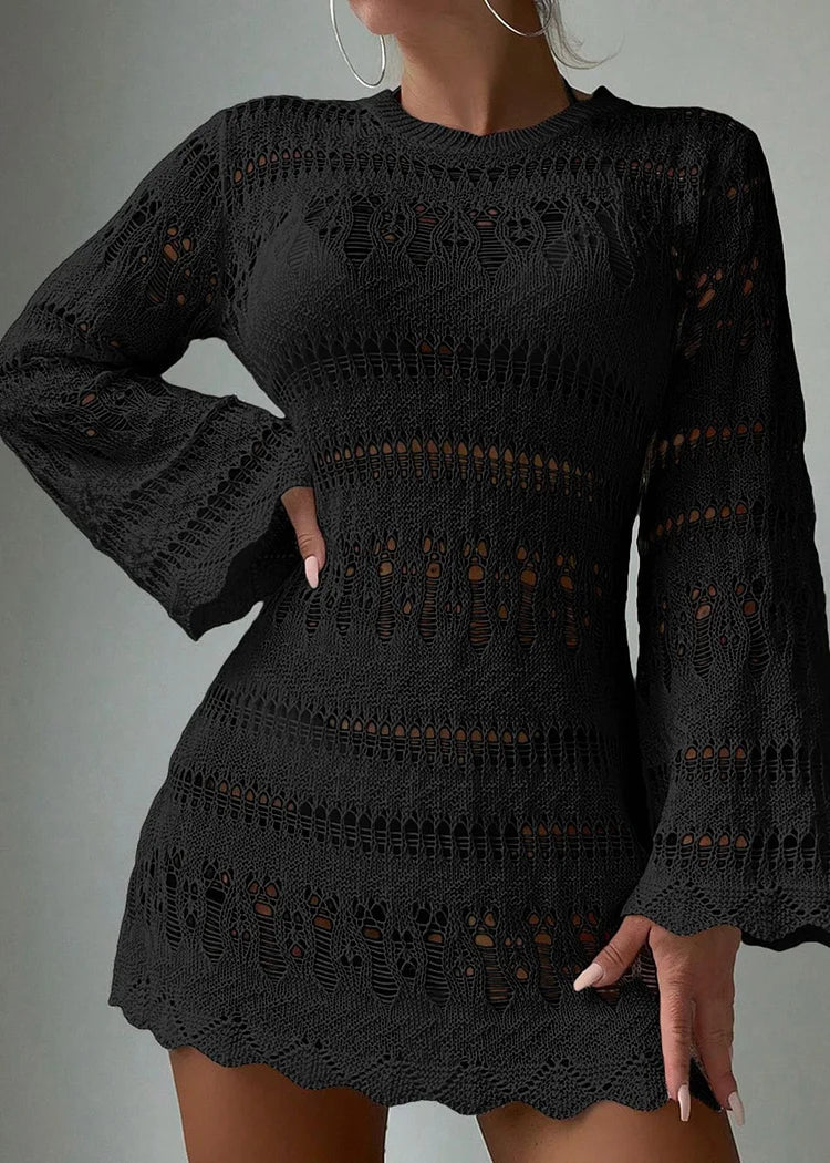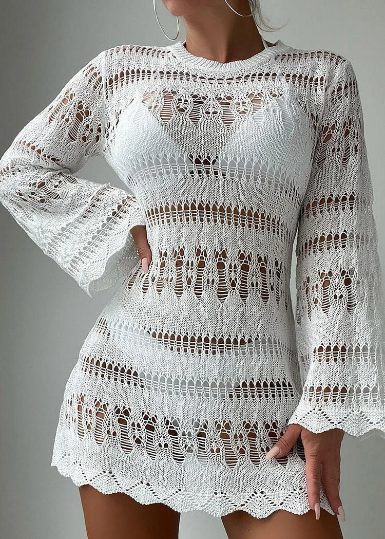 Boholita - White O-Neck Hollowed Out Cover Up Dress