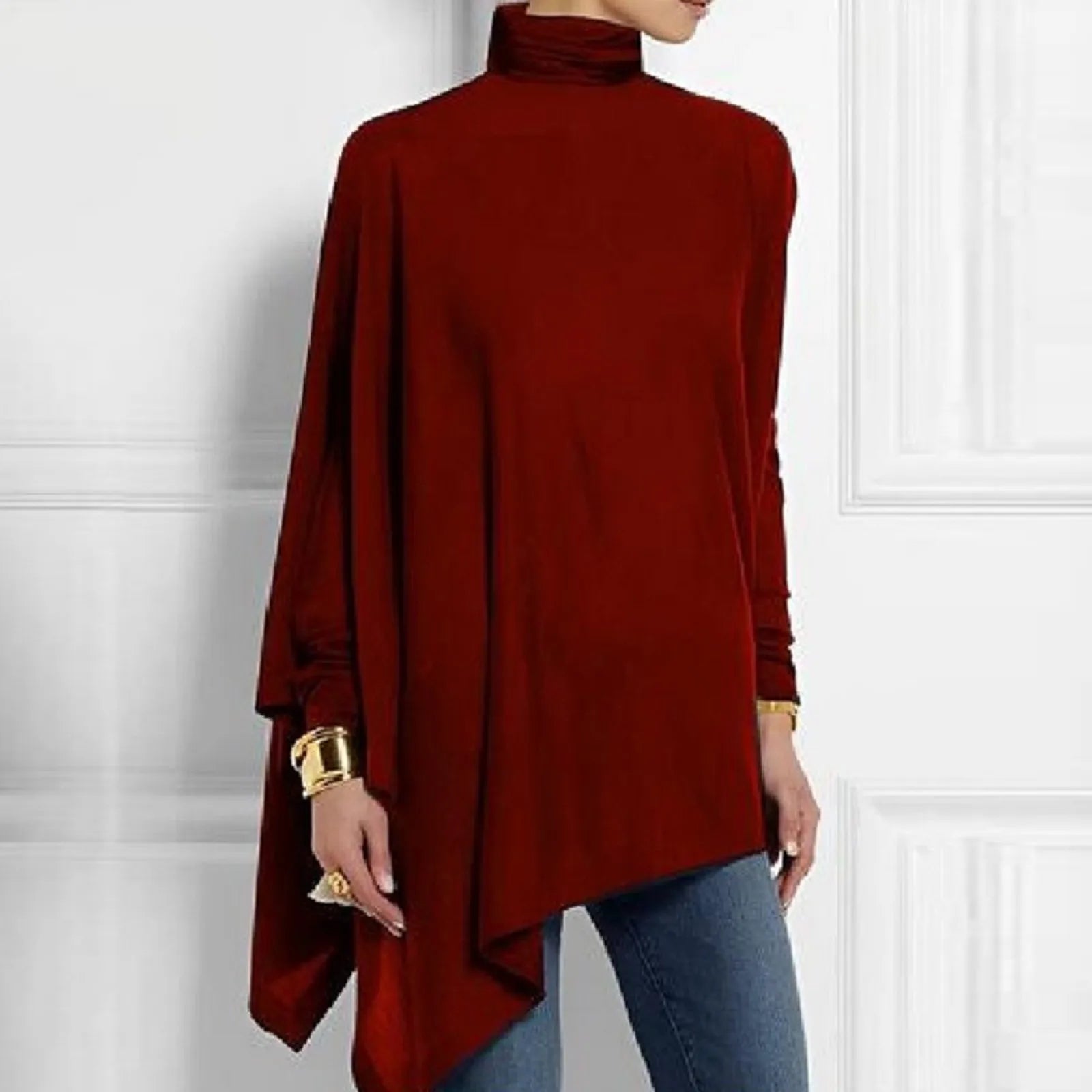 Elegant Design: The unique irregular turtleneck adds a modern twist to a classic silhouette, making it a versatile choice for any outfit.