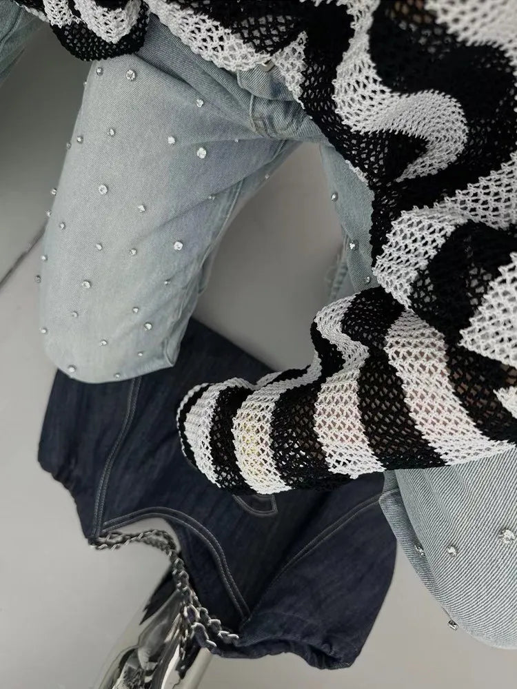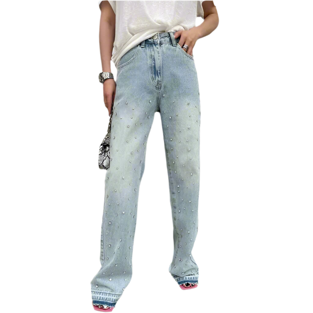 Upgrade your wardrobe with these luxurious crystal-embellished jeans that seamlessly blend glamour and casualness. With their timeless cut and detailed crystals, this piece is perfect for making a chic statement.